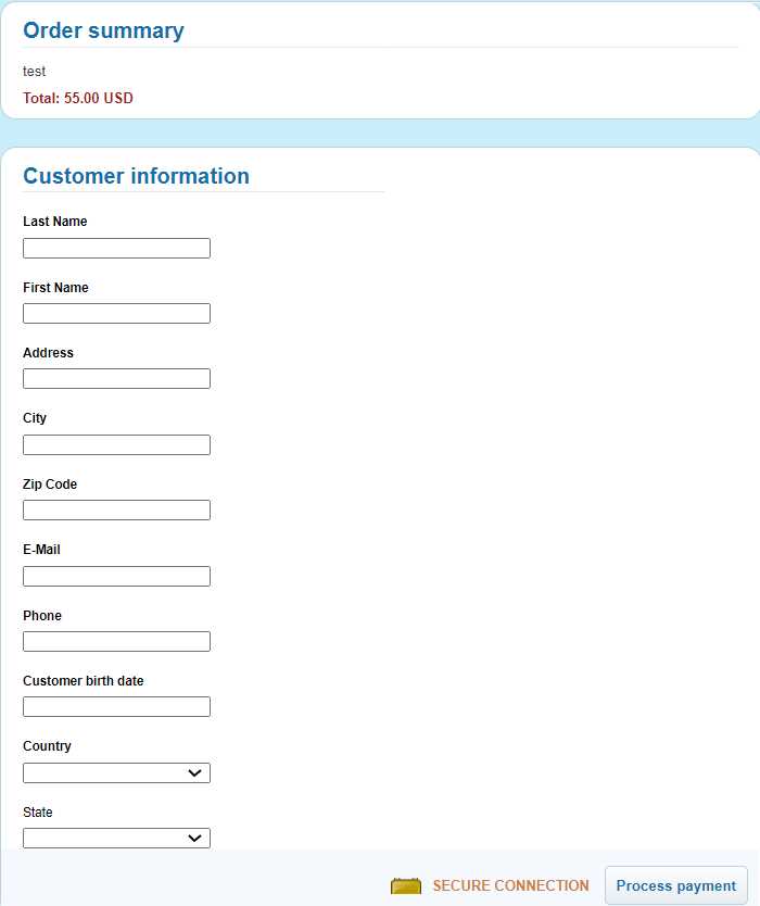 Buy Now Button integration is relevant for Connecting Party who has limited portfolio of products to sell. It is the easiest way to integrate with Crederes. This way of integration doesn’t require much technical effort. Buy Now Button integration also allows Connecting Party to exclude itself from storing, processing, or transmitting Payer’s cardholder data or other sensitive payment details. Such data is submitted by Payer on Crederes hosted customer details form and payment form in PCI DSS certified environment.