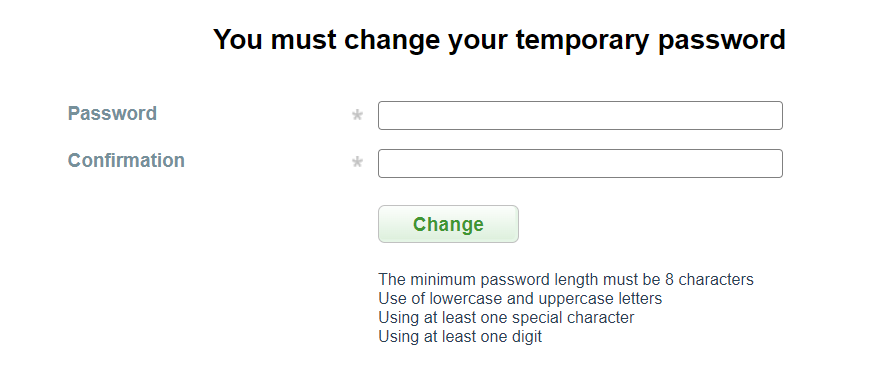 Upon initial access to Crederes UI, after logging in, the manager employee will be asked to create and enter a new password.