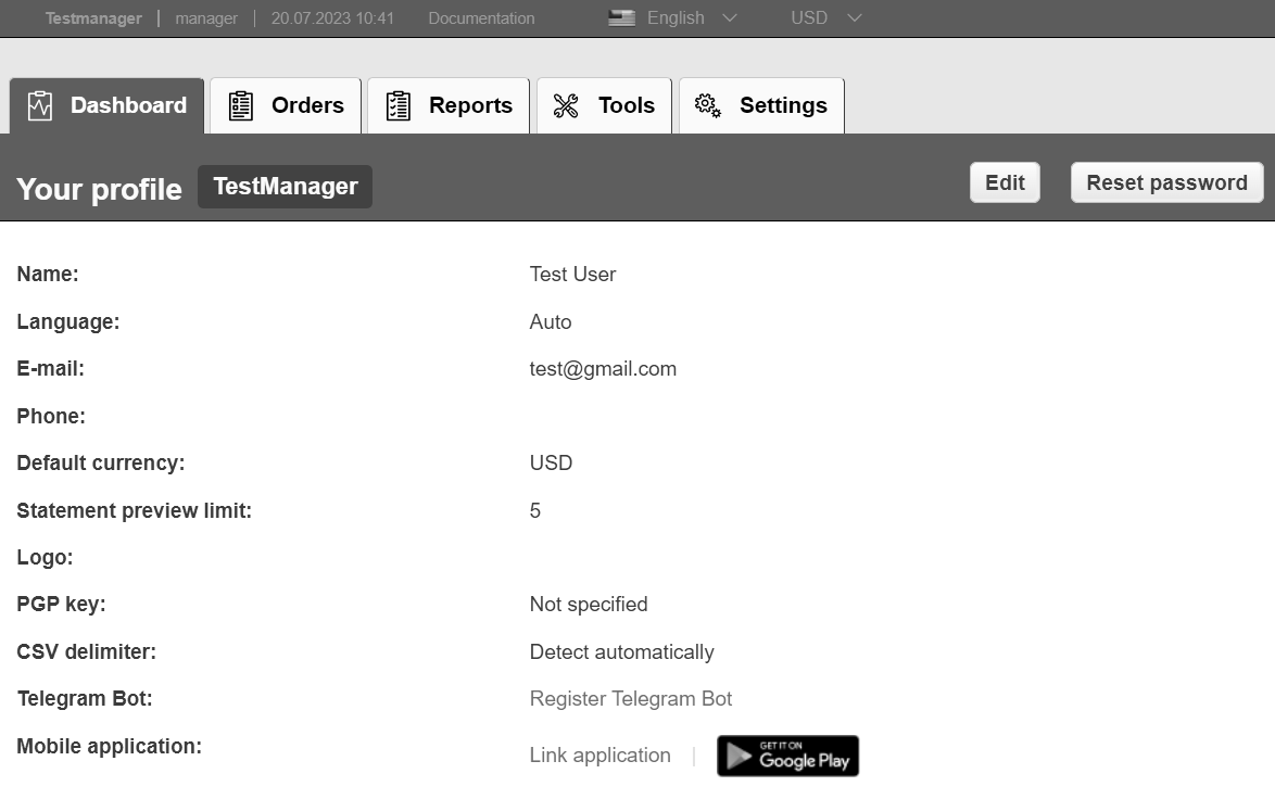 Manager employees can browse transactions, configure processing solutions and download various reports via Crederes UI. It is available at https://gate.csp-solution.com/paynet-ui/ for production environment and at https://sandbox.csp-solution.com/paynet-ui/ for sandbox environment.