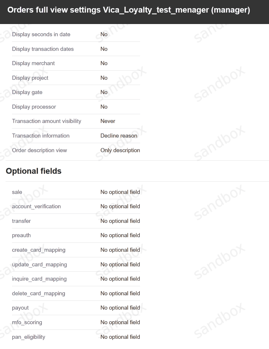Manager employees can browse transactions, configure processing solutions and download various reports via Crederes UI. It is available at production environment and at sandbox environment.