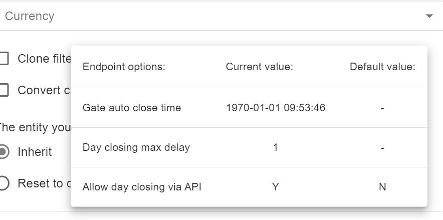 To convert all settings with amount into new currency, click Convert currency Gate settings