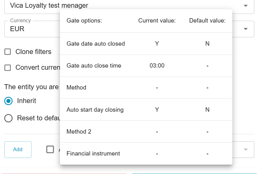 Other gate settings will be inherited automatically. In order to reset parameters to default, select Reset to default.