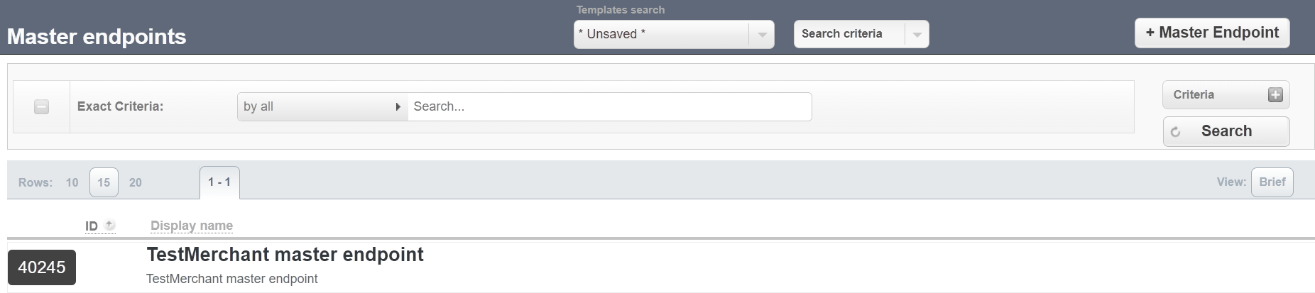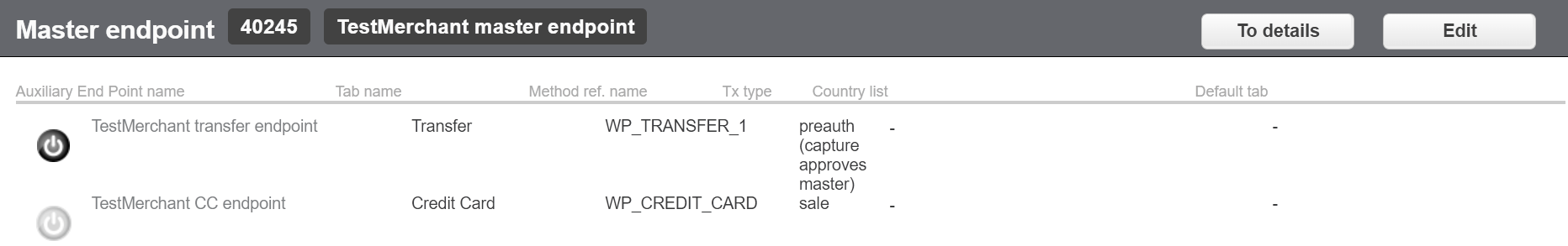 Click on the To details button to view Master Endpoint itself (filters, payment form, name and etc).