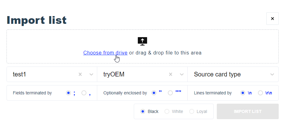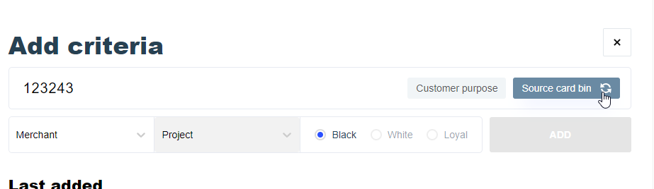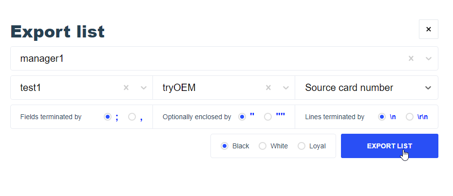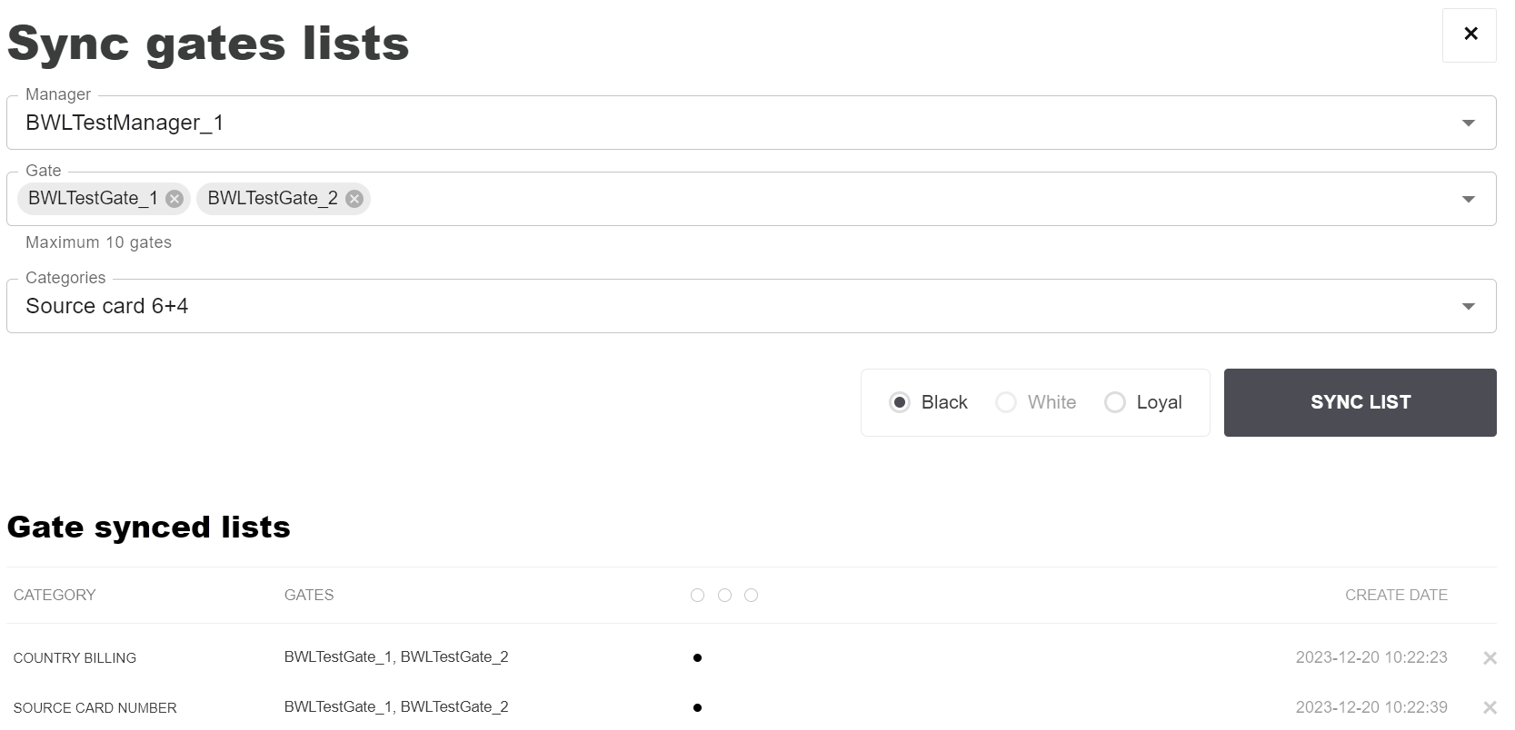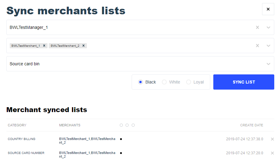 Select Merchant or Manager to switch between adding BWL list to Merchant or Manager.