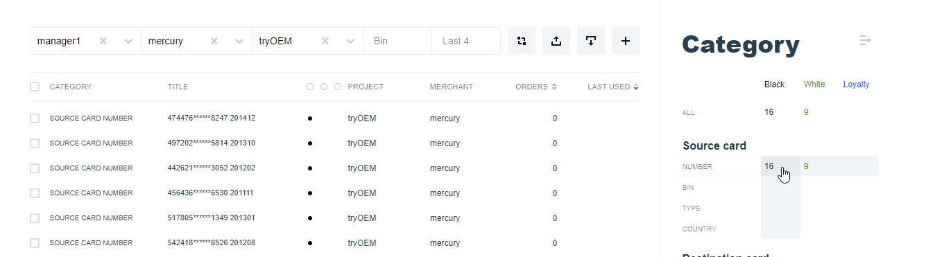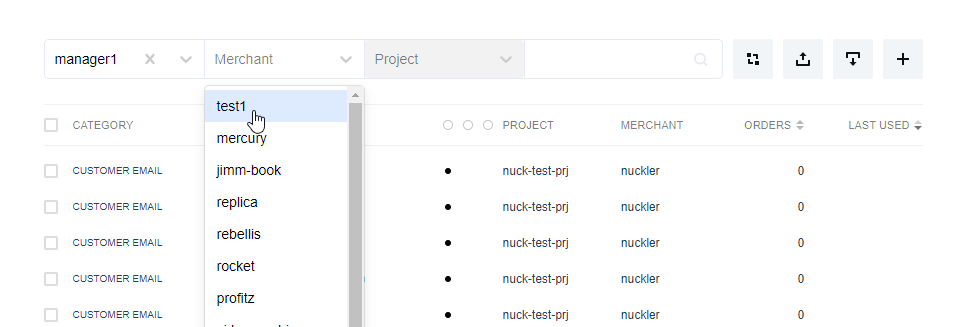 In order to select entries from list, specify manager and merchant/gate/processor for corresponding lists from dropdown menu.