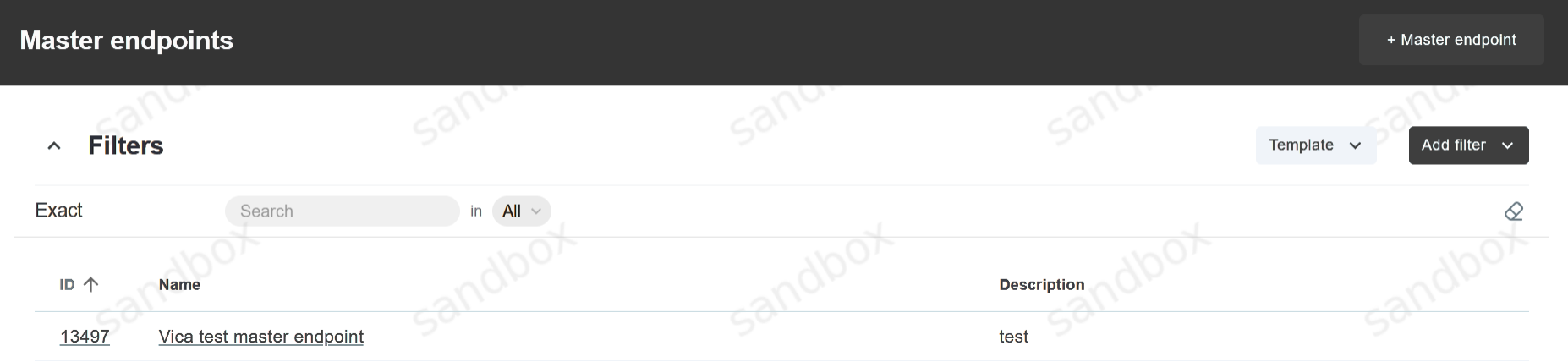 Click on the To details button to view Master Endpoint itself (filters, payment form, name and etc).